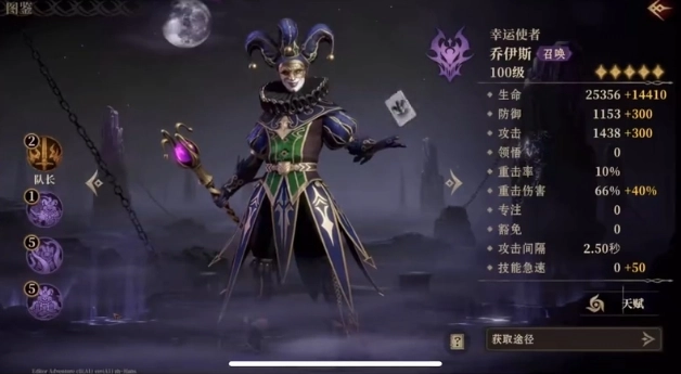 接下来是史诗英雄乔伊斯,他的被动技能在自身与召唤物间构建起一道独特链接。一旦召唤物获取增益,他自身也会同步得到相同增益效果。乔伊斯的战技主要瞄准生命值最低的敌人,能对其造成210%的黯蚀伤害。倘若场上存在他所召唤的幸运幻影,该幻影便会模仿此次施法动作,并造成同样伤害。他的威能技是在指定地点召唤一个持续45秒的幻影,且最多可同时存在3个幻影。这些幻影每次发动普通攻击,都能打出70%的输出值,为战斗助力不少。