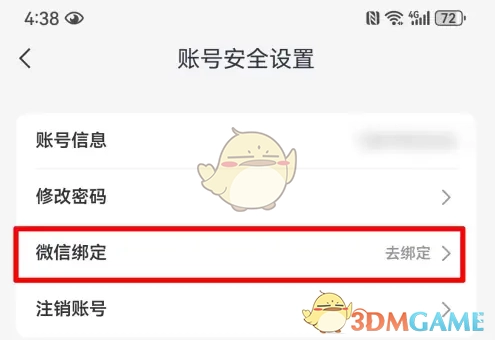 3、进入账号安全设置页面,点击微信绑定选项,同意相关条款后,即可绑定个人微信号。