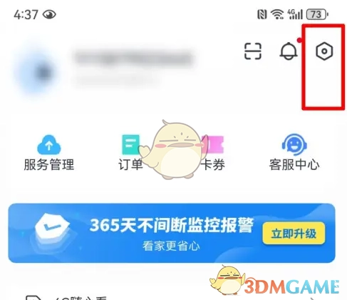 1. 打开云蚁物联app,进入“我的”页面,点击右上角的齿轮状设置图标。