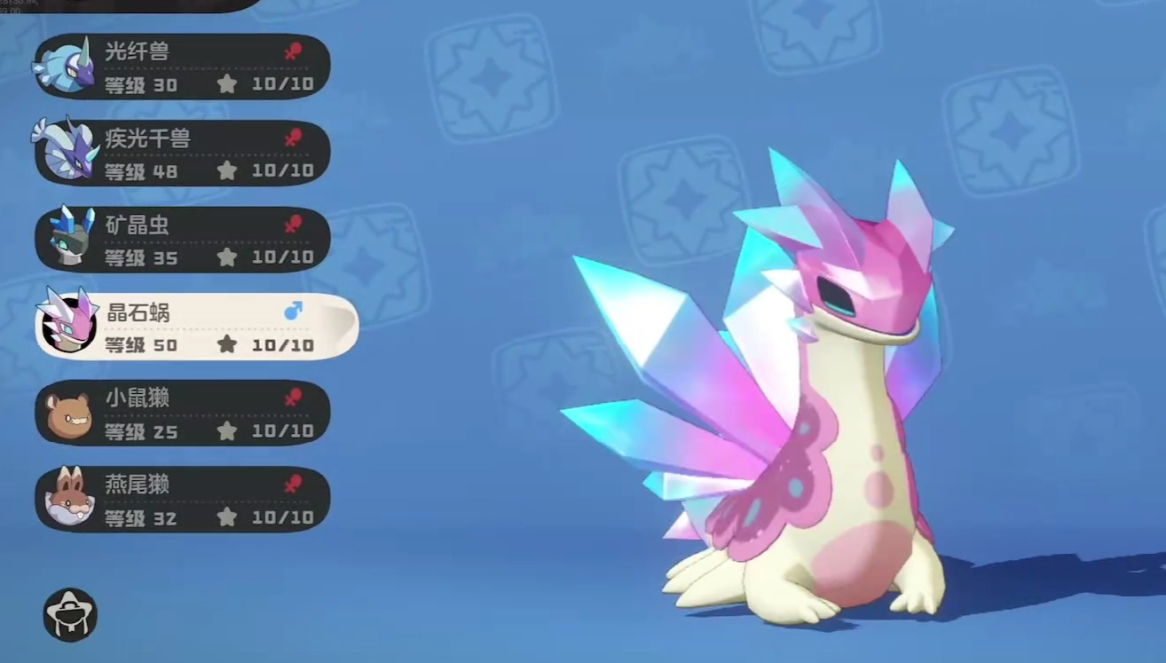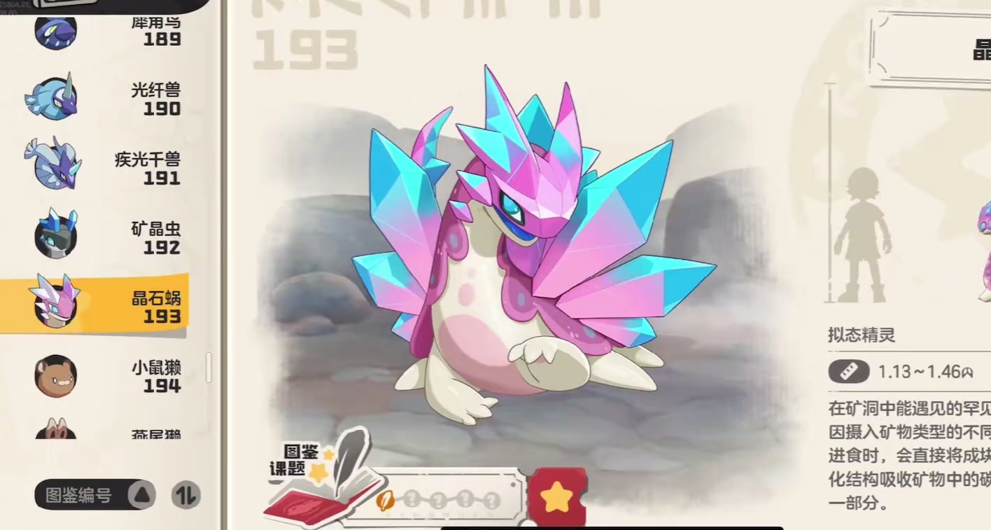 晶石蜗在游戏里是极为特殊的精灵,它无需像其他精灵那样从基础特殊状态历经四个阶段的升级。玩家只需先捕捉矿晶虫,接着完成一个阶段的升级,就能让晶石蜗进入终极状态。然而,也正因晶石蜗的进阶过程简短,导致捕捉矿晶虫的难度极高。