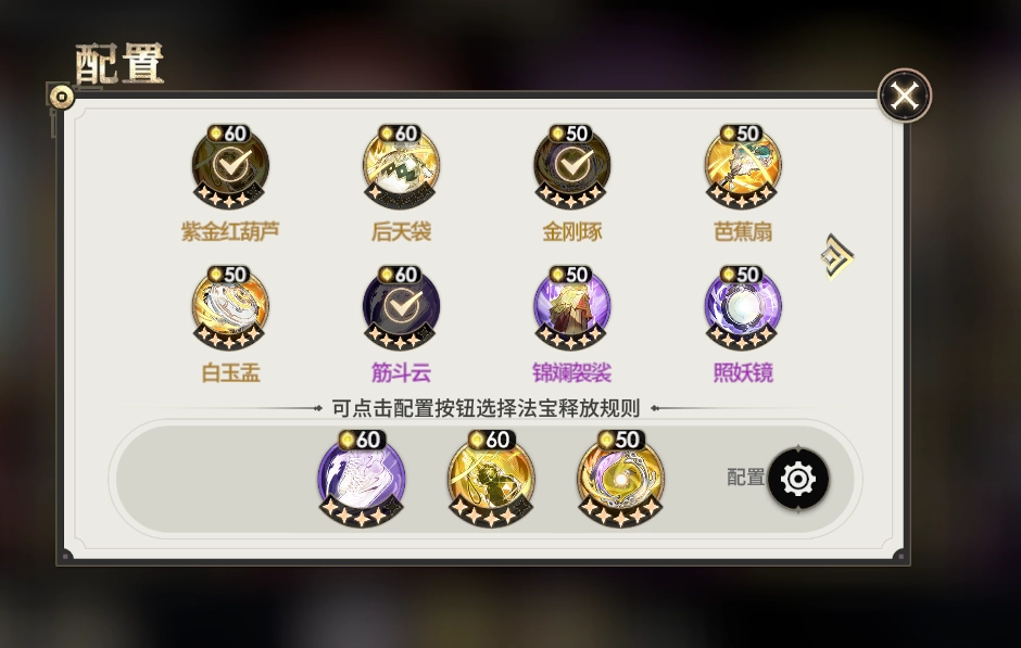 筋斗云搭配紫金红葫芦或白玉盂,再加上金刚琢,能让主C在首回合就爆发出高额伤害,更轻松地秒掉敌人,造成敌方减员。葫芦或白玉盂分别适用于不同的角色,切前排的郭锦用葫芦,切后排的李白用白玉盂,这能大幅增强对前排或后排的输出能力,提升斩杀线。最后由金刚琢出手打出控制,由于它具有人数越少攻击越易集中的特性,所以有更高概率打出控制效果,极其适合秒杀流阵容。