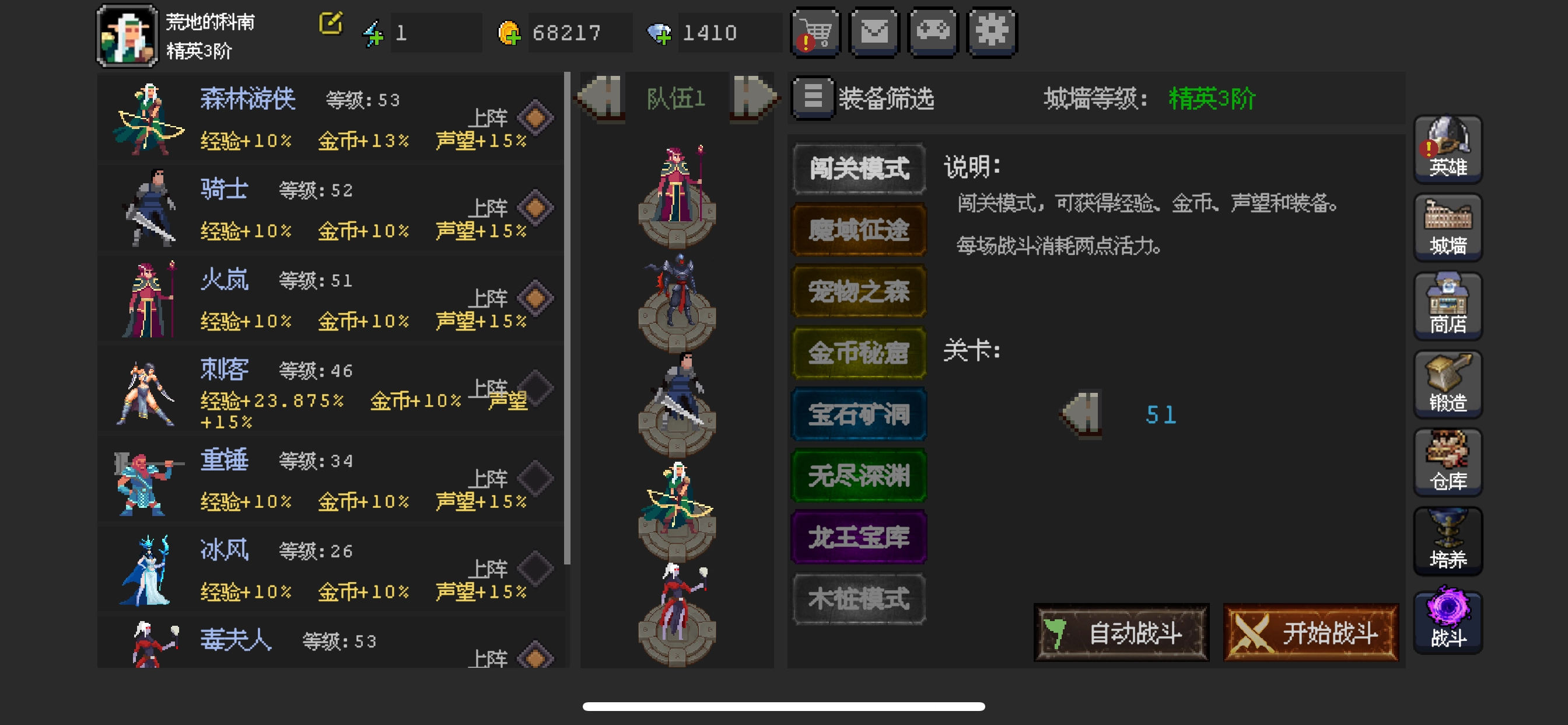 1. 新手要尽快通过看广告获取血刺,前期的主力输出是骑士和火法,敏捷系角色大多充当DD以及buff提供者。