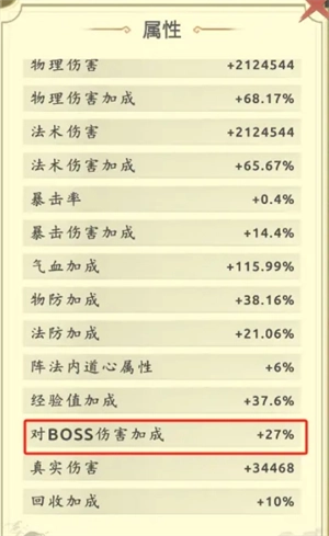 1级对应的比例为6%,2级是9% ,3级为12%,4级为15%,5级为18%,6级为21%,7级为24%,8级为27%,9级为30%,10级为33%。按照规律,2级BOSS的属性为6% + 9% = 15%,3级BOSS的属性是9% + 12% = 21%,4级BOSS的属性为12% + 15% = 27%,5级BOSS的属性为15% + 18% = 33%,6级BOSS的属性为18% + 21% = 39%(原文本6级计算结果40有误,应为39%),7级BOSS的属性为21% + 24% = 45%,后续等级依此类推。