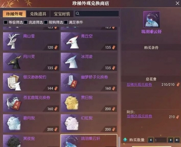 3、寻觅到坐骑【琉羽乘云轩】,耗费210个【珍稀外观兑换券】便可获取。