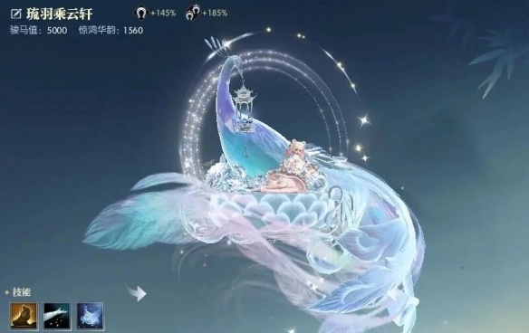4、此坐骑属于飞行坐骑,自身携带三个技能,解锁之后会增加1560点惊鸿值。