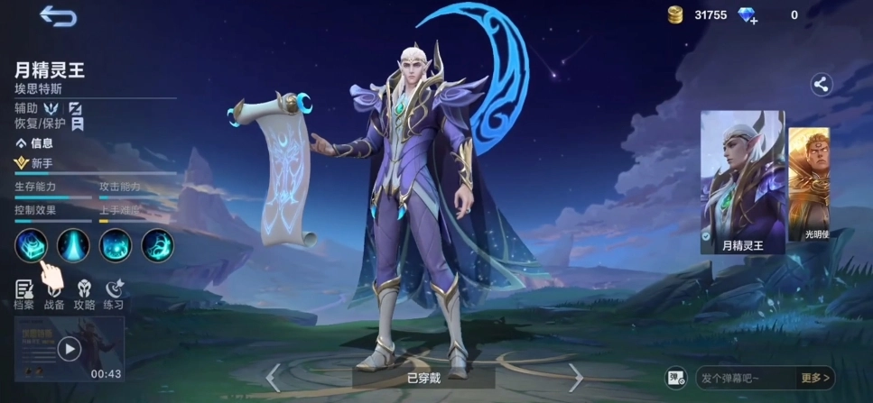 埃思特斯拥有多种技能效果。其技能可对目标英雄施展强力恢复魔法,能恢复目标英雄高达70%的总魔法攻击生命值。在3秒的特定时段内,埃思特斯可与指定角色建立神奇链接,被连接的目标会缓慢恢复自身30%的生命值。当月光洒落大地,若区域内有敌人且他们试图逃出技能作用范围,其移动速度会大幅降低90% 。 埃思特斯还具备强化治疗技能,触发后8秒内,能持续恢复自身105%的生命值。大招随着战斗推进,充能值会逐步积累,当充能值达到100层时,埃思特斯的下一次普通攻击,将对敌人造成100%的物理攻击伤害与150%的魔法伤害,攻击同时还额外造成50%的魔法伤害,且敌人移动速度会大幅降低60%,该减速效果持续1.5秒。