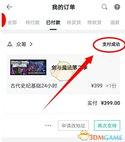4、当支付成功后,界面会显示“成功参与”,具体显示情况如图所示。