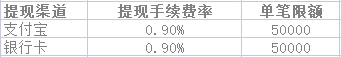 提现手续费现已调整为0.9%,最低收取2元,金额向上取整,不设上限,单笔提现限额为5万元。