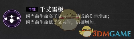 【感电】:防御提升。遭受技能攻击后,会对攻击者造成雷相伤害(每回合最多触发2次)