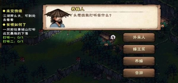 青城山(13,9)养蜂人打听【外来人】,(14,4)打听【外来人】