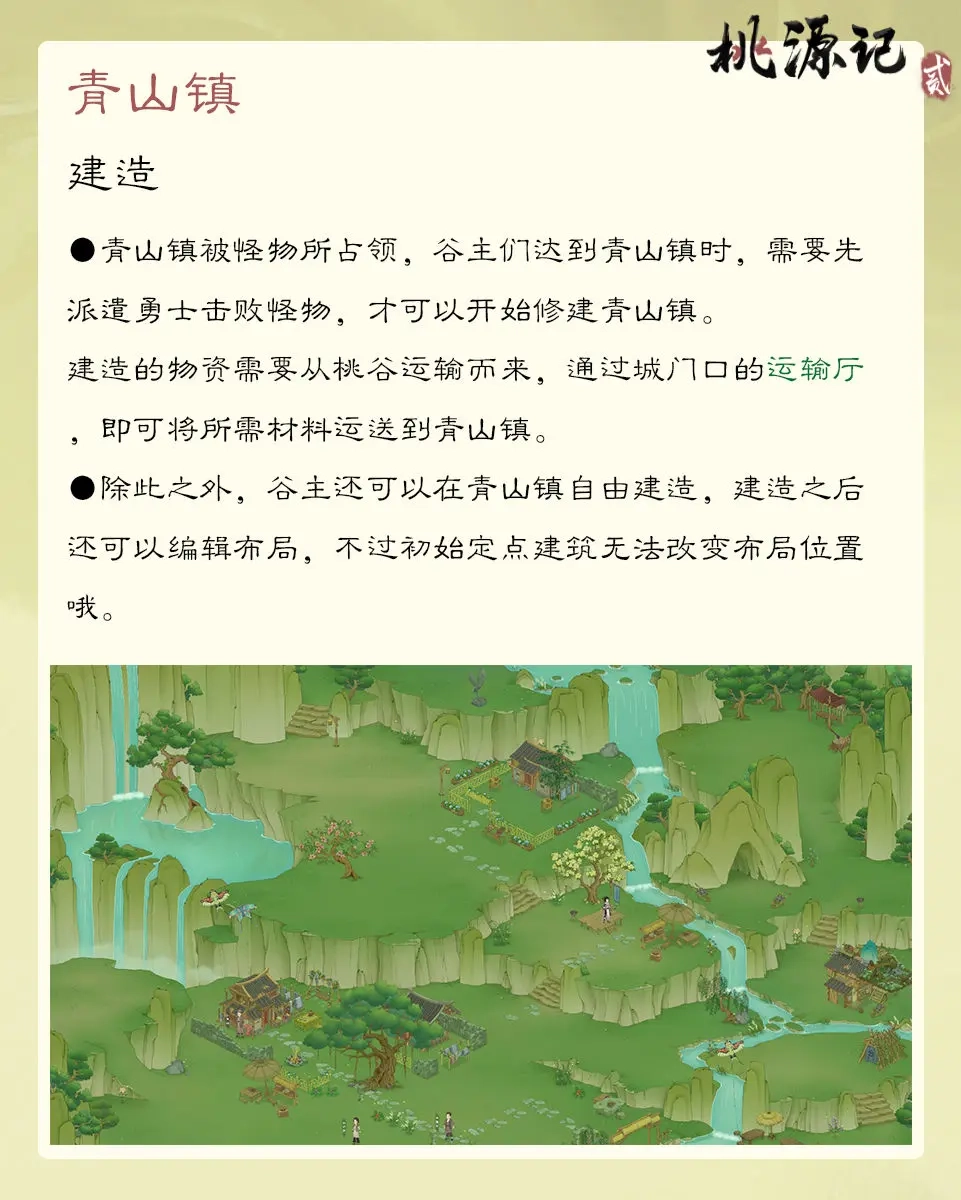 桃源记2中青山镇地图有哪些玩法呢?当玩家等级达到20级,便能抵达青山镇。后续还能通过乘鹤飞行直接前往青山镇,这种方式更为便捷。尚未达到该等级的玩家,可以瞧瞧下方对青山镇的详细介绍,提前熟悉这个谷外地图。感兴趣的小伙伴们,一起来看看吧。