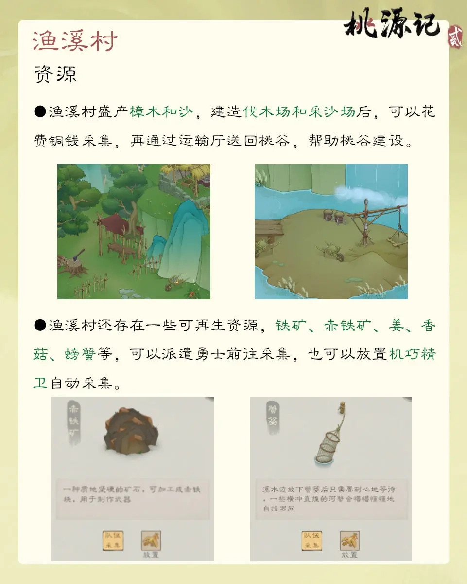 以上便是okok下载站整理呈现的桃源记2渔溪村资源介绍,以及谷外地图渔溪村的玩法说明。若想获取更多相关游戏攻略,敬请关注okok下载站!