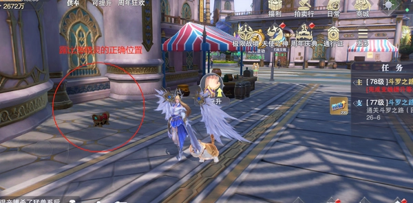 2. 第二个彩蛋获取方式如下:首先,在出生点后方找到黑衣人并与之对话;之后,帮他寻找位于出生点左侧的海精灵;完成后,返回与黑衣人再次对话,最后前往下图中的正确位置找到露比海精灵,这样就能得到2张武魂觉醒券以及100钻石的奖励。