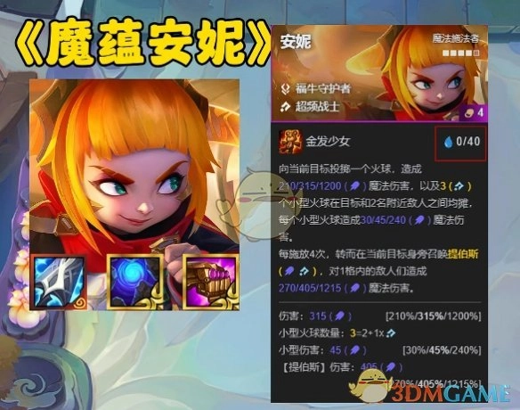3、详细剖析:安妮无需释放四次技能就能召唤出一个提伯斯,魔蕴与蓝buff相配合,可让她迅速完成召唤。