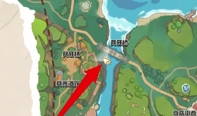 第四个就在月牙桥这里,我们到了月牙桥后可以前往两侧的岸边寻找。