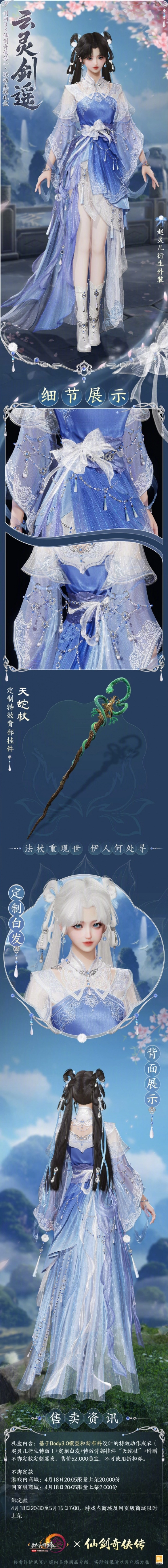 云灵剑遥是《剑网3》与仙剑的联动外装,这套外装究竟是什么模样呢?其套装原型源自李逍遥与赵灵儿,女号外装依照赵灵儿的外观打造,男号外装则参照李逍遥的外观设计。此外,这款时装还搭配了白发,以及特效背部挂件,它们将一同上线。接下来,就由小编为大家详细呈现《剑网3》仙剑联动外装云灵剑遥的全貌!