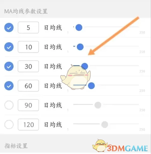 4、只需设置日均线,如下图所示。