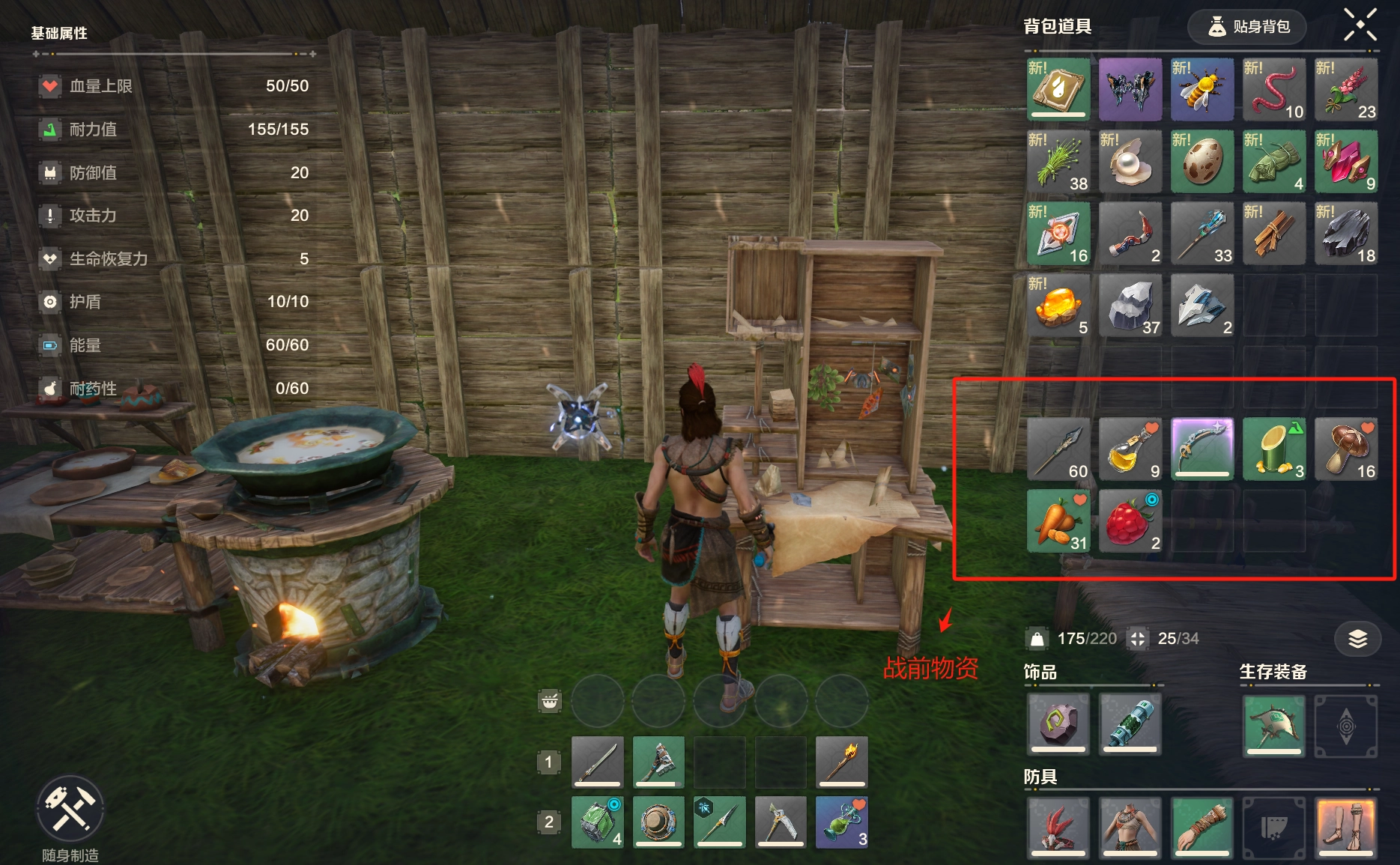 打裂蹄巨兽更推荐使用弓箭攻击,所以要携带箭矢,其他的物资主要用于提高自身的生存能力,保证不被BOSS直接秒杀。