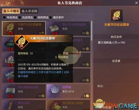 2. 参与活动获取活动货币后,打开商店,在其中找到【天羲节日纪念徽章】。