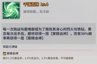 黄忠是一位实力强劲的战将。在持久战中,黄忠具备显著优势。他拥有独特的【聚精会神】BUFF机制,随着行动次数的增加,其自身属性会按百分比逐步提升,真正是越战越勇。倘若遭遇难以迅速终结的战斗,黄忠可作为应对策略型英灵加入队伍。
