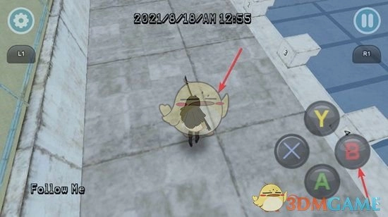 2、接下来,我们要引导病娇酱靠近武士刀,随后点击界面右侧的B键。
