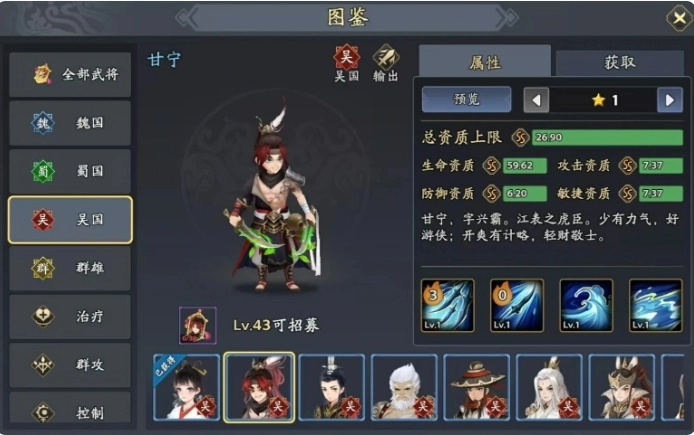 除此之外,小乔的主动技能能对单个目标进行精确回复,还会附带一定几率清除目标身上的异常状态。当敌方给己方队友施加各种负面状态时,这一效果能快速化解危机。甘宁属于吴国阵营中的输出型角色,特别是在单体伤害上表现突出,不管是必杀技还是主动技,甘宁都能打出相当可观的单体伤害。而黄盖作为防御型武将,其作用主要体现在前排承受伤害方面。在战斗回合开始之际,黄盖可凭借自身技能直接为己方全体带来援护效果。