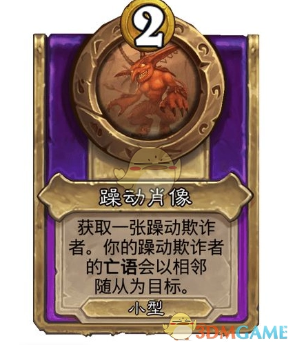 效果:得到一张躁动欺诈者。此躁动欺诈者的亡语会把相邻的随从当作目标。