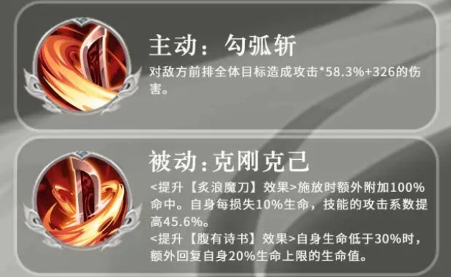 鉴于该被动技能在战斗中的重要性和实用性,玩家在技能加点时,务必要将其点满,除了上述被动技能外,吕蒙还有一个强化效果的被动技能,这个技能可以让他的优先出手效果多次叠加,敌方单位所受到的各种负面状态会更加明显,例如移动速度会更慢、防御力会更低等,而且还有一定的伤害减免提升效果,时间也会持续三个回合。