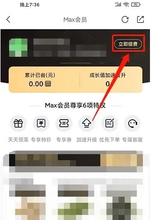 3、进入MAX会员界面,点击"立即续费",如图所示