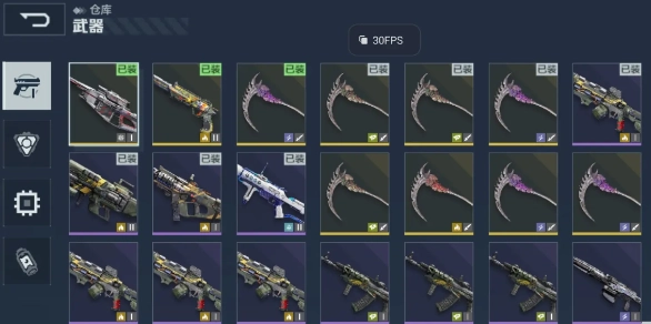 仓库的第一个板块为武器库,玩家点击后便能查看武器的属性与效果。武器品质依从高到低进行分类,最低品质为蓝色,最高品质是橙色。橙色品质的武器堪称极品,一直是玩家们追逐的目标。