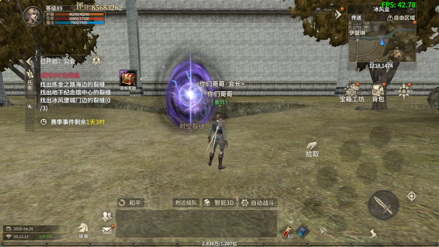 冰风堡城门旁的裂缝大概处于1218,1474的位置,寻得裂缝后开启时空裂缝副本,进入副本并消灭怪物就能完成修复。
