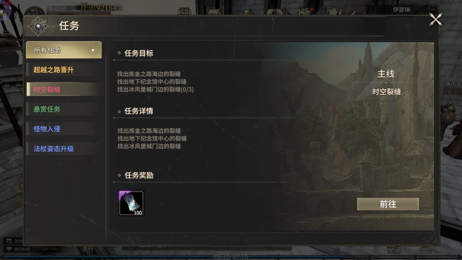 修复三处时空裂缝,即可完成全部任务。需要注意的是时空裂缝副本具有一定难度,建议各位冒险者组队进入。