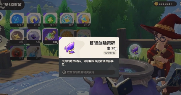 收集完成后,玩家可前往炼金台,把所有零碎放置于此,经合成后便能得到血脉药剂。这瓶血脉药剂至关重要,能助力精灵快速实现超进化。