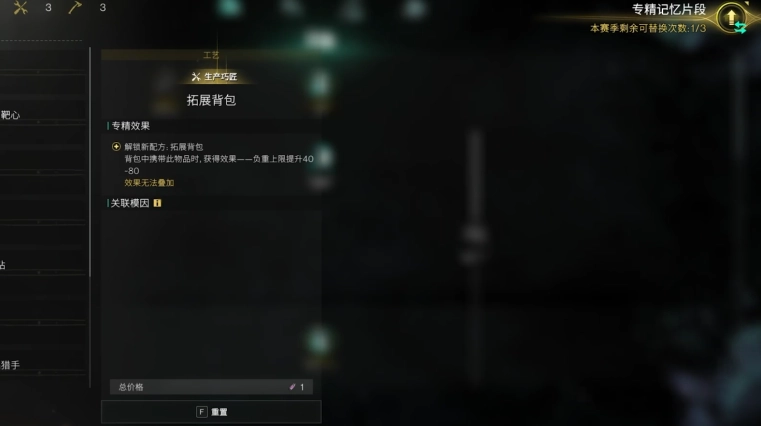 此外,还有一些其他值得考虑的专精。拓展背包能够提高玩家的负重上限,让玩家在探索过程中可以携带更多物资返回基地,十分符合喜爱探索与采集的玩家的需求。木石行囊则可以减轻背包中矿石、碎石以及原木的重量,这对于资源的收集与运输同样很有帮助。特制储物箱则能够制作出拥有64格储物空间的箱子,极大地增加了玩家物资的存储容量。