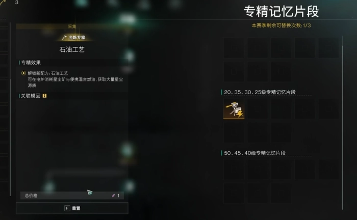 首先来讲必选专精,硫磺化工占据首要位置。玩家通过它能够生产酸液,在游戏中,酸液就如同硬通货一般,几乎可以用来交换所有关键道具,是解锁新技术以及搭建高级设施的核心要素。一旦拥有,就能在游戏后期极大地缓解资源压力。石油工艺同样至关重要,玩家借助电炉消耗星尘矿与便携混合燃油,便可获取大量星辰源质。源质在游戏的中后期用途极为广泛,既是重要的货币,也是关键资源。点出这个专精,基本上就能实现源质自由。另外,星尘采矿平台也不容小觑,它能够提升20%的矿产量,与石油工艺相互搭配,进一步稳固源质获取的基础,对于玩家的发展有着重大意义。