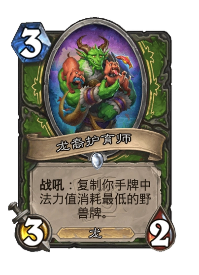 效果:战吼:复制你手牌里法力值消耗最少的野兽牌。