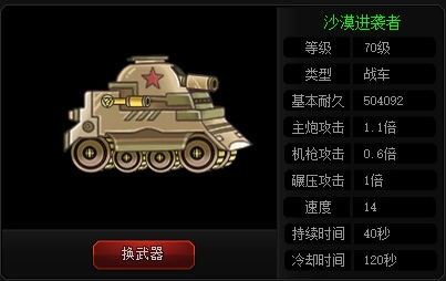 9、沙漠进袭者具备主炮威力强大、耐久指数较高的特点。
