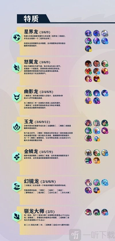 金铲铲之战巨龙之巢有哪些全新羁绊?大家都知道,金铲铲之战更新了“巨龙之巢”这个全新版本。在该版本里,推出了七大龙族的不同羁绊,想必玩家们都很感兴趣。别着急,下面小编就来给大家详细介绍,快来一起看看吧。