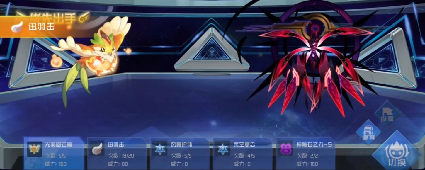 此外,风翼护体属于攻击类型,由于其已适配玩家先发动攻击,玩家便可顺势直接出手,对敌方造成伤害。实际上,若能在三回合内达成免疫效果,敌方就会陷入异常状态,此时玩家便有取胜之机,随后可再施展灵空意念与临风利爪。