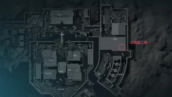 4、航天基地密码门在图下位置右侧工业区中组装室二楼。