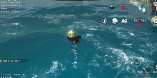 3、接着前往坐标“830,764”处,水下藏有宝箱。