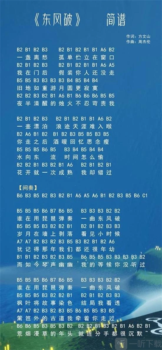 3、《镜花之琴·东风破》乐谱
