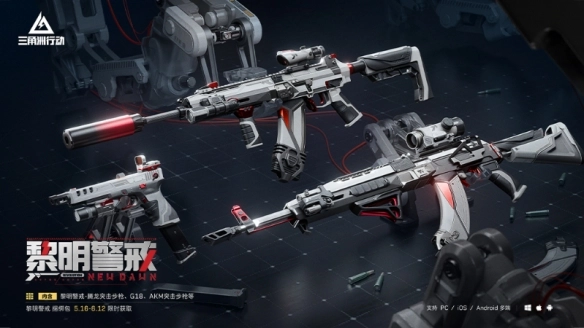 该捆绑包内含有:黎明警戒 - 腾龙突击步枪、AKM突击步枪、G18手枪,以及黎明警戒系列的挂饰、头像、军牌和喷漆。