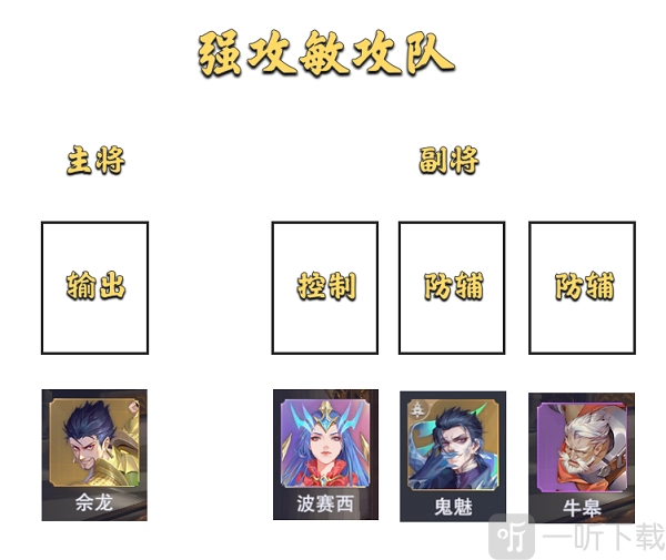 2. 第二种队伍配置思路通用性较强,毕竟通常大家练度最高的魂师是强攻系与敏攻系,以它们作为主将最为稳当,所以这种队伍配置思路也适合绝大多数玩家。至于副将,搭配1位控制系魂师和2位防辅系魂师也没问题,比如上面推荐的配置,就是一个尚可的阵容思路。