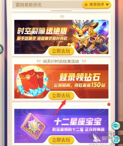 页面上会呈现多个活动,大家只需点击“登录领钻石”的活动即可。其他活动与免费领取钻石无关,可直接忽略。