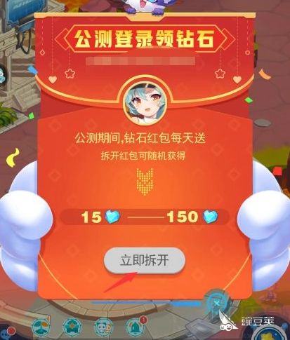 当你点击“点击登录领钻石”的活动后,页面会弹出一个红包,你能够选择马上拆开,拆开后就会随机获得数量不等的钻石。