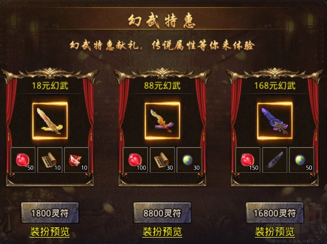 幻武3件套总价值是26000灵符左右 开区不要想着和别人抢大怪 老实去打小怪攒元宝(元宝非常重要) 既然你想零充前面就要耐得住诱惑 打出来的能卖的都卖,神器、元婴和功勋令前期比较好卖,价格看各个区的情况。装备就基本别想了零充党跟不上区开放装备的节奏。开区久一点 你也有能力 可以刷老虎和风神 这2个出圣龙玉和血龙玉 价格在200-250一个 卖到2.6W真的没那么困难 3件套获得完毕。 说说幻武套该不该买,一件不能少。先说第一个吧,这个最便宜效果是能把怪物定住不动不攻击 这个是没什么好说的 攻速也不用说了吧很重要 人家有攻速的1秒2刀 你1秒1刀 这差距不是一点半点 疑问最多的应该是88那个诅咒 这个重要性也不低 以前我认为这个没用就没买 发现杀大怪 怪回血非常夸张 8000W血怪不靠元婴基本是伤害没回血多 上面那等级什么的都别看 没什么关系我200级打430的屠夫 一样让它无法回血 很重要的一个幻武 3个幻武必买