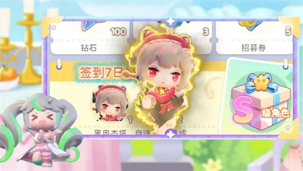 累计福利大派送,签到周期为七天。不仅有10连抽机会、实用养成道具,还有隐藏惊喜哦!只要累计签到满七天,就直接赠送S级角色黑奥杰塔。
