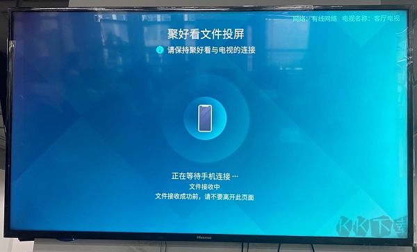 请注意:若未识别成功,需将聚好看应用彻底清除后重新打开,同时要确认手机与电视连接的是同一个WIFI 。