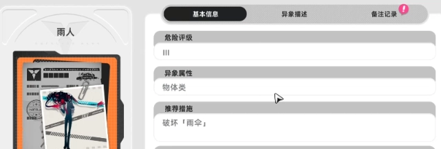 雨人:在非雨夜时,它看似一把普通雨伞。然而,一旦有人靠近,此人便会直接被拽进其中展开战斗。唯有打败它,并破坏这把雨伞,才能脱身。